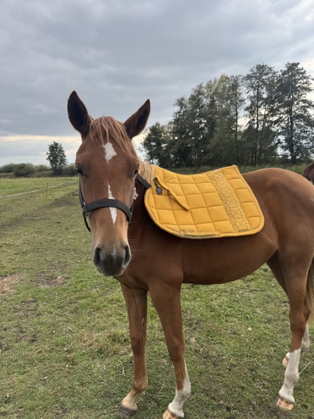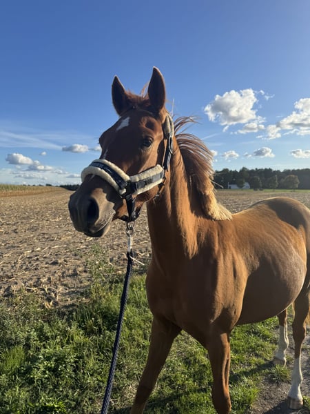 Im Auftrag wird hier eine Jährlingsfuchsstute verkauft. Sie steht momentan in einer gemischten Herde ist rang niedrig. Wenn man sich mit ihr beschäftigt macht sie wirklich alles. Sie kennt spazieren gehen ist Schmiede und Verladefrom. Hatte zum spaß schonmal eine Schabracke drauf was Sie auch gar nicht interessiert hatte. Sie war bis jetzt immer gesund hatte keine erkankungen. Zum Pferd: Rasse: Deutsches Reitpony Geboren: 17.03.2024 Farbe: Fuchs Geschlecht: Stute Vater: Turfhorst Nightlife Mutter: Franka Die Stute ist aus eigener Zucht Je mehr sie weiter Ausgebildet wird steigt der Preis Sie kann gerne auch besichtigt werden Bei fragen steh ich gerne zur verfügung