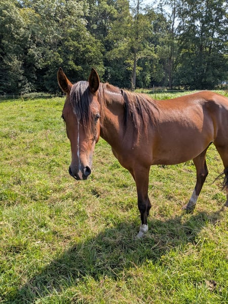 Zum Verkauf steht unsere vielversprechende, 2-jährige Stute Quick Lady aus Gentleman x Quarterbacks Junior. Sie zeigt sich im täglichen Umgang brav und unkompliziert - halfterführig, gibt alle 4 Hufe und lässt sich problemlos verladen. Sie wurde regelmäßig entwurmt und geimpft. Quick Lady wird voraussichtlich das Endmaß erreichen. Die Mutter kann ebenfalls besichtigt werden. Diese wird derzeit von einem 14-jährigen Kind geritten.