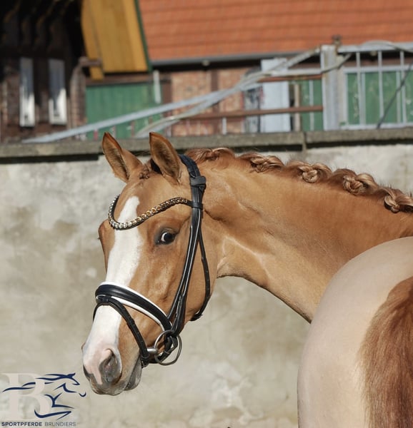 „Cookie Lou“, dreijährige, ca.1.44m große Weser-Ems Stute von Kastanienhofs Cockney Cracker x Top Champy. Seit kurzem unterm Sattel überzeugt sie mit ihrer guten Arbeitseinstellung und ihren drei hervorragenden Grundgangarten. Sie besticht außerdem mit ihrem lernwilligen und kopfklaren Charakter und kann bereits frei in verschiedenen Hallen geritten werden. Hier reift ein ganz besonderes Pony heran, das sehr viel Perspektive bietet. Ein guter TÜV liegt bereits vor.