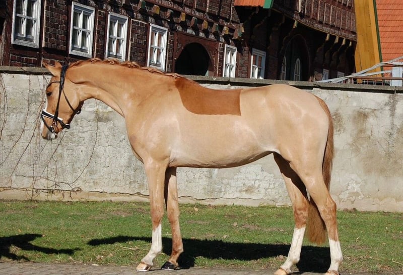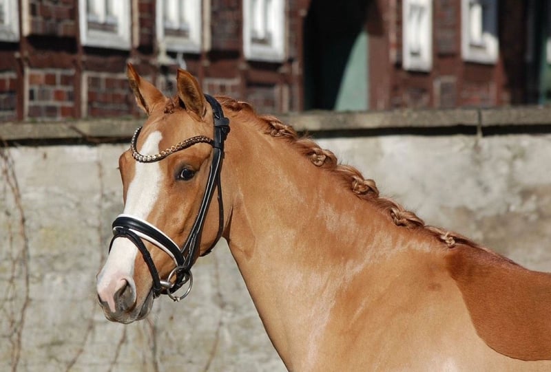 *2023 , ca. 1.44m große Weser-Ems Stute von Kastanienhofs Cockney Cracker x Top Champy. Seit kurzem unterm Sattel überzeugt sie mit ihrer unerschrockenen Art, sowie ihren drei hervorragenden Grundgangarten. Sie besticht außerdem mit ihrem lernwilligen und kopfklaren Charakter und kann bereits frei in verschiedenen Hallen geritten werden. Hier reift ein ganz besonderes Pony heran, das sehr viel Perspektive bietet. Ein guter TÜV liegt bereits vor.