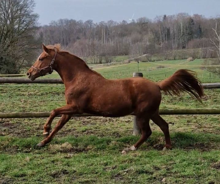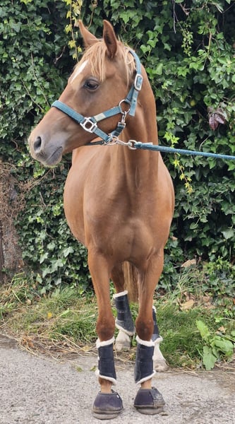 Diese wunderschöne Stute sucht jetzt ihren Platz. Sie kennt alles, was aufm Hof passiert. Ist ausgestattet mit drei sehr guten Grundgangarten. Zum Selbstfertig machen. Für die Zukunft hat man später ein tolles Sport und Kinderpony. Vater ist Neverlend WE × D-DAY AT × Cyriac WE