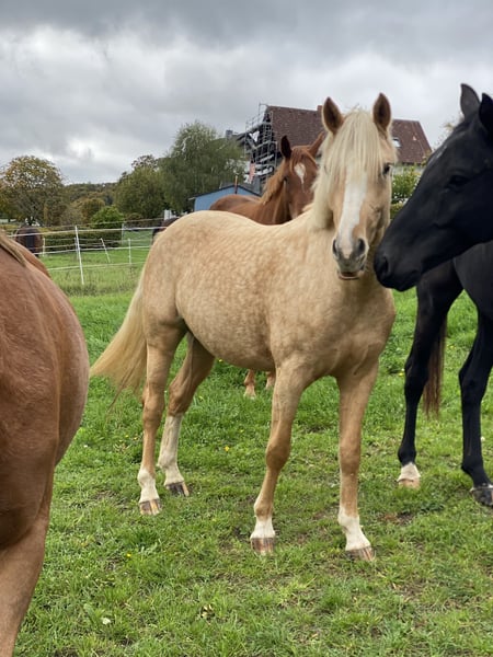 Ich biete eine 3 jährige DRP Stute direkt vom Züchter an. Aktuell ca.1,45m. Anlongiert,kennt Sattel,Trense und reitergewicht bisher im Schritt und kurzer Trab. Sie verfügt über einen sehr guten Schritt,schwungvollen Trab und raumgreifenden Galopp. Ein tolles Pony zum selber weiter ausbilden fürs Viereck. Sie ist eine anhängliche neugierige und artige junge Stute die bisher in allem unkompliziert war. Lieb beim Schmied und Tierarzt. Gute Abstammungen siehe Bilder. Bei Interesse gerne schreiben.