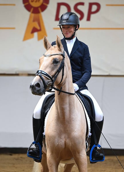 Hier geht's zur Kollektion und Online-Registrierung: https://auktion.pzvbw.de/auctions MwSt. 19% Hochsympathische Ponystute vom 3-fachen Bundeschampion DSP Cosmo Royal. Reiterlich schon weit gefördert und charakterlich gefestigt, so dass sie als Familienpony geeignet ist. Mehrfach hochplatziert in Reitpferdeprüfungen. A very likeable pony mare by three-time German Champion DSP Cosmo Royal. She has already received extensive training and a well-developed character, making her a perfect family pony. She has placed highly in several young horse riding classes.