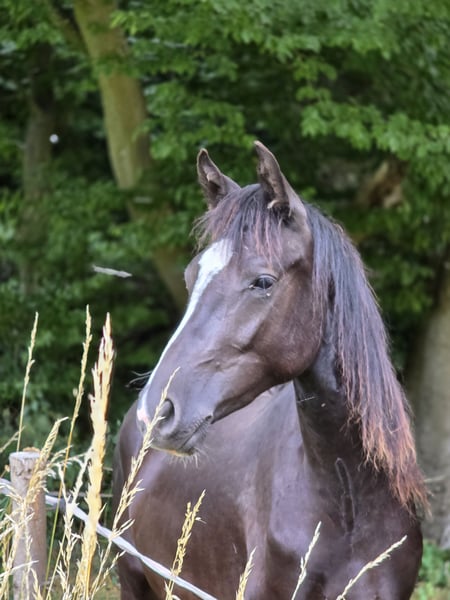 XXL-Nachwuchsjuwel: FS Next Diamond x No Limit (M-erfolgreiche Mutter) Zum Verkauf steht eine hochveranlagte, 2023 geborene Deutsche Reitponystute in der Traumfarbe Schwarzbraun. Mit ihrer schicken Zeichnung – viermal weiß und einer gleichmäßig schönen Blesse – ist sie ein absoluter Blickfang mit höchstem sportlichem Potential. Diese junge Dame ist eine Tochter des Siegerhengstes FS Next Diamond. Ihre Mutter ist die ebenfalls zum Verkauf stehende Paradis pour l'Amour (No Limit x Plaisier), die selbst M-platziert im Fahren sowie A-platziert im Springen und in der Dressur ist. Hier trifft bewährte Leistungsgenetik auf modernste Dressurpointierung. Aktuell im Ponyendmaß stehend, mit der Tendenz zum XXL-Pony (ideal für größere Jugendliche oder kleine Erwachsene). Für ihr Alter bereits hervorragend vorbereitet! Sie ist anlongiert, kennt die Doppellonge sowie den Langzügel und ist bereits an Sattel und Geschirr gewöhnt. Eine Stute, die gefallen möchte! Sie ist ehrgeizig, aufmerksam und zeigt bereits jetzt eine tolle Arbeitseinstellung. Im Umgang ist sie absolut kinderfreundlich, lässt sich brav putzen, führen und geht entspannt spazieren. Sie wächst artgerecht im Herdenverband auf. Sie wurde regelmäßig dem Hufschmied vorgestellt und ist selbstverständlich lückenlos entwurmt. Aufgrund einer krankheitsbedingten Bestandsauflösung suchen wir nun den passenden Platz, an dem ihr Talent gefördert wird. Jahrgang: 2023 Farbe: Schwarzbraun (4x weiß, Blesse) Preis: 10.900 Euro Ein Kennenlernen ist nach Terminabsprache jederzeit möglich. Überzeugen Sie sich selbst von diesem Nachwuchssternchen!