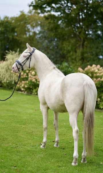 For sale is this beautiful XL riding pony mare. "Geisterpuppe" was born in 2022 and has since been lovingly raised on a family-run horse farm. During the summer months, she was turned out on pasture 24/7, and in the autumn and winter, she stays in the stable with daily turnout in the paddock. She has always been handled on the lead and has been regularly worked with since this summer (groundwork, grooming, leading in the riding hall as well as on the outdoor arena). The mare is very friendly, open, and easy to handle in everyday interactions. She is familiar with agricultural machinery, dogs, children, the riding hall, and outdoor arena. We have carefully prepared "Geisterpuppe" for starting under saddle, taking our time. Currently, I am riding her on the longe line. She consistently remains relaxed, attentive, and willing to work. Thanks to her excellent pedigree, this mare is also ideally suited for breeding. Due to personal reasons, we unfortunately have to part with this wonderful mare. We are looking for a 5-star home where she can enjoy a versatile training program. "Geisterpuppe" would also be an ideal match for a mother-daughter partnership. X-ray images from October 2025 are available. By arrangement, it is possible to include suitable accessories for "Geisterpuppe" (rain and winter sheets, fly sheet, leg protection, saddle, bridle including bit). For inquiries or to schedule a viewing, please feel free to contact us by phone or WhatsApp at: 0173 8841071 or 0175 6601860.
