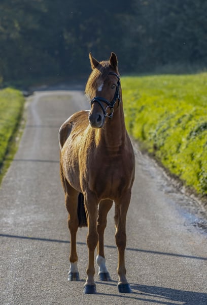 Million Coco ist eine 4-jährige Fuchs-Stute von Million Reasons. Million Reasons war Siegerhengst 2018 in Westfalen und war für das Bundeschampionat qualifiziert. Mittlerweile ist er erfolgreich in England unterwegs. Seine Vollschwester Marry the Night (Wurde bei uns auch ausgebildet) geht international bis 130cm. Die Mutter Coco haben wir 2,5 jährig vom Züchter gekauft und war all die Jahre ein tolles Kinderpony in unserem Schulbetrieb. Aufgrund Ihrer Abstammung haben wir uns dazu entschlossen sie vor einigen Jahren als Zuchtstute einzusetzen. Million Coco ist das zweite Fohlen von Coco. Coco hat sich auch gleich mit ihrer neuen Reiterin für das „Finale der Minis“ in Frankfurt qualifiziert. Million Coco haben wir selber gezogen und ausgebildet. Sie wird von einer jungen Amazone und auch von Kindern geritten. Sie springt einen kleinen Parcours. Sie ist immer gesund bisher gewesen. Sie kennt Wiese mit mehreren Pferden/Ponys, LKW und Hänger fahren ist auch kein Problem. Sie ist regelmäßig beim Schmied und beim Tierarzt. Im Umgang ist sie ein richtiger Schatz. Die Kinder können auch Bodenarbeiten mit durchführen. Sie lernt sehr schnell und dadurch ist das Arbeiten mit Ihr sehr einfach. MwST. ausweisbar