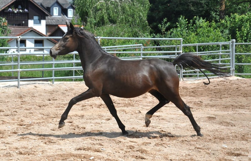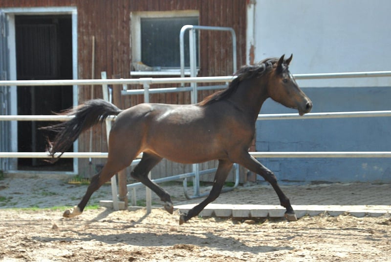 For sale is a promising 4-year-old riding pony mare with excellent potential for sport and breeding. The young lady is appropriately trained for her age and consistently demonstrates diligence, eagerness to learn, and motivation in her work. She is very light-footed and sensitive, with three good, expressive basic gaits, showcasing the quality needed for a future in competitive riding. Due to her age, she is not suitable for beginners at the moment, but with further training, she will develop into a fantastic partner. From a breeding perspective, she is highly interesting: her pedigree includes proven lines such as Dimension, Can Dance, and Nemax. There is also very good show jumping blood in her lineage (Douglas). Her dam line is particularly noteworthy, consistently producing very well-behaved, child-friendly ponies that have reliably carried their young riders through all disciplines of competitive sport. A charming young mare with quality that can impress both in sport and in breeding. If interested, we look forward to hearing from you.