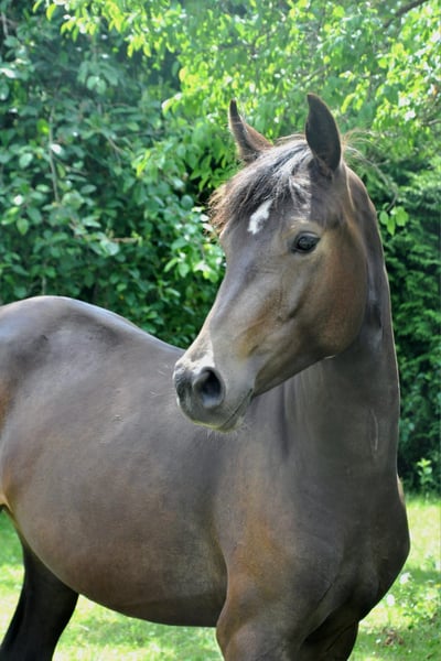À vendre, une prometteuse jument ponette de 4 ans avec d’excellentes perspectives pour le sport et la reproduction. La jeune demoiselle est formée selon son âge et se montre toujours assidue, curieuse d’apprendre et motivée dans son travail. Elle est très légère sur ses pieds et sensible. Elle possède trois allures de base solides et dynamiques, offrant la qualité nécessaire pour poursuivre une carrière sportive. En raison de son âge, elle n’est pas encore adaptée aux débutants, mais avec une formation supplémentaire, elle deviendra une partenaire exceptionnelle. Elle est également très intéressante d’un point de vue généalogique : son pedigree inclut les lignées éprouvées de Dimension, Can Dance et Nemax. Un sang de saut d’obstacles très performant (Douglas) est également présent dans ses origines. La lignée maternelle est particulièrement remarquable : elle regroupe des poneys très dociles et aimant les enfants, qui ont toujours accompagné leurs jeunes cavaliers avec fiabilité dans toutes les disciplines du sport équestre. Une charmante pouliche en devenir, de grande qualité, capable de convaincre aussi bien en compétition qu’en reproduction. Pour plus d’informations, n’hésitez pas à nous contacter.