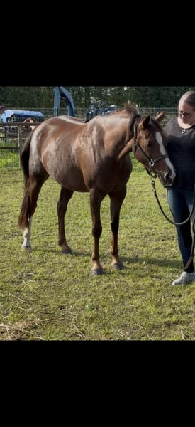 Verkauf im Auftrag – direkt vom Züchter Diese bildschöne Fuchsstute (geb. Juni 2021) sucht ein erfahrenes Zuhause, das Freude an der weiteren gemeinsamen Ausbildung hat. Sie ist ca. 1,44 m groß und überzeugt durch ihre neugierige, charakterstarke Art und ihren schnellen Lernerfolg. Ausbildungsstand: Im Sommer wurde sie schonend an die Arbeit herangeführt und kennt: • Longe, Sattel & Trense • Reitergewicht (bisher nur im Stand) • Aufstiegshilfe & Bodenarbeit Die Stute ist noch ungeritten, zeigt sich jedoch aufmerksam, intelligent und arbeitswillig. Da sie zu Beginn gerne testet, braucht sie einen konsequenten, durchsetzungsstarken Partner, der ihr Sicherheit gibt und klare Strukturen bietet. Sie wurde von mir bisher nur wenige Male gearbeitet (ca. 5 Einheiten), lernt dabei sehr schnell. Derzeit hat sie Winterpause, kann auf Wunsch aber angeschoben werden. Ihre Mutter ist eine auffällige Fuchs-Volltiger-Stute, wodurch bei späterer Zucht bunte Fohlen möglich wären (Mutter siehe letztes Bild). Probereiten ist aufgrund des Ausbildungsstandes derzeit nicht möglich. Weiter Informationen, Fotos und Videos gerne auf Anfrage. Aufgrund von schlechter Erreichbarkeit am Tag, bitte Kontakt ausschließlich per E-Mail oder WhatsApp/Nachricht.