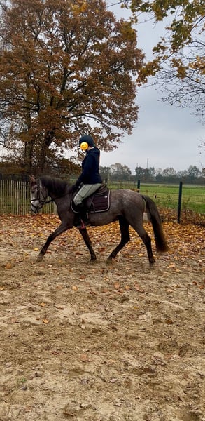 Zum Verkauf steht meine 4-jährige Schimmelstute „Susi“ mit einem Stockmaß von 144 cm (offiziell gemessen). Sie ist Schmiede und Verladefromm. Aktuell steht Sie mit 2 WB Wallachen im Offenstall und ist sehr robust. Unarten sind nicht bekannt. Susi wurde im letzten Herbst schonend angeritten. Über den Winter durfte sie noch einmal eine Pause genießen und ist nun seit einigen Wochen wieder im Training. Unter dem Sattel zeigt sie sich sehr brav und unkompliziert. Sie deckt auch kleinere Erwachsene gut ab und wird ebenso von Kindern geritten. Außerdem konnte Susi bereits erste Turnierluft schnuppern. Dennoch sehe ich sie weniger als sportlichen Turniercrack, sondern eher als vielseitiges Freizeitpony mit Allround-Talent. Ich denke, die Bilder sprechen für sich. Bei ernsthaftem Interesse freue ich mich über eine Nachricht. Um dem jungen Pony unnötig viele Proberitte zu ersparen, berechnen wir eine Gebühr, die beim Kauf selbstverständlich verrechnet wird.