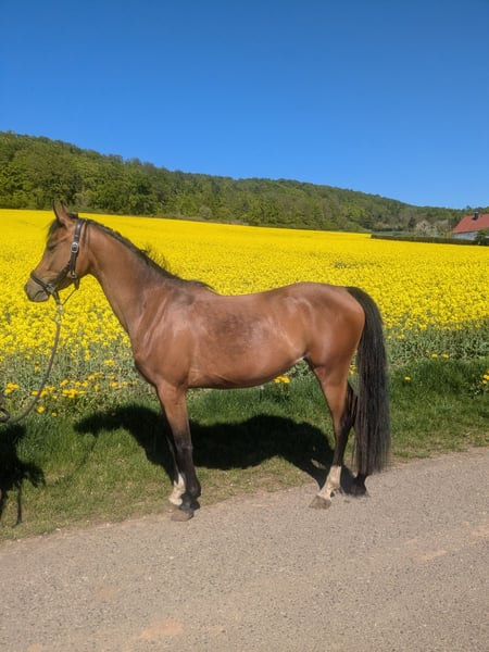 **Sales Advertisement: German Riding Pony Mare** For sale is a charming brown mare of the German Riding Pony breed, born in 2022. With a height of 145 cm, she is perfect for young riders who love jumping. This talented mare already shows promising approaches in jumping and has a friendly, open personality. She is well-mannered, easy to handle, and has a balanced character, making her an ideal partner for young riders. She is healthy and regularly dewormed. If you are interested or have any further questions, please feel free to contact me. Come visit us and get to know this wonderful mare in person!