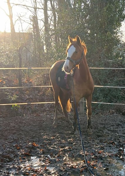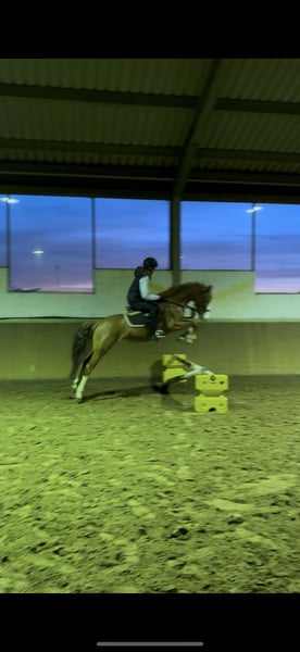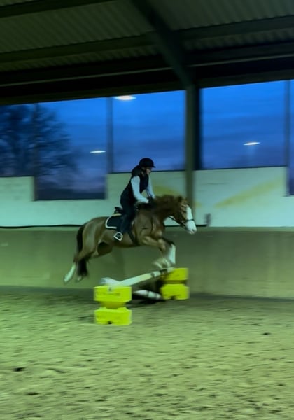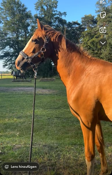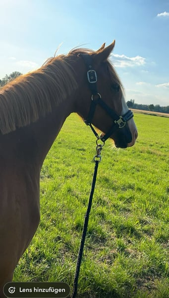 Dreamy German Riding Pony – brave mare with heart and talent seeking a 5-star home For sale is a beautiful 4-year-old German Riding Pony mare, currently approximately 1.45 m in height (still growing). This confident young lady is an absolute eye-catcher – brave, honest, sweet, and truly special. A genuine treasure for both young and old! She is good with children, reliable in handling, and so well-behaved that she can even be ridden bareback with a halter. At the same time, she has enough go and quality to be a great partner for ambitious amateurs. Under saddle, she is very well-behaved, already familiar with jumping, and can be ridden alone from the yard. She is curious, brave, and unshakable – a real confidence booster for insecure riders and also a sporty diamond in the rough. Well-behaved on unfamiliar arenas and in the field! Championship-quality!! She would also be perfectly suited as a future carriage pony, as she is very attentive, eager, and willing to work. A true heart pony that you won’t want to part with – honest, loving, and unique. Location: Harsewinkel Please feel free to contact us if interested – she is looking forward to her person! Trial ride €25, which will be credited upon purchase.