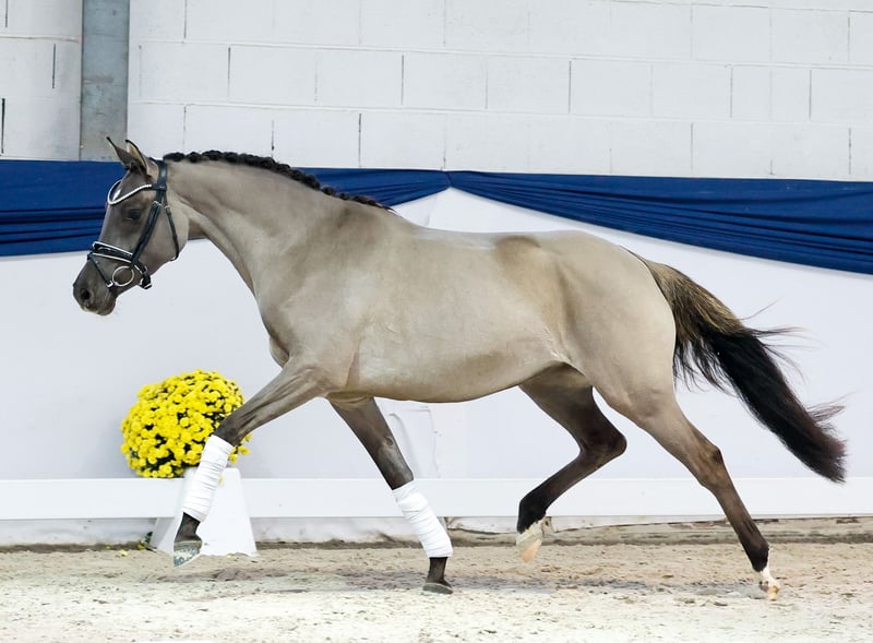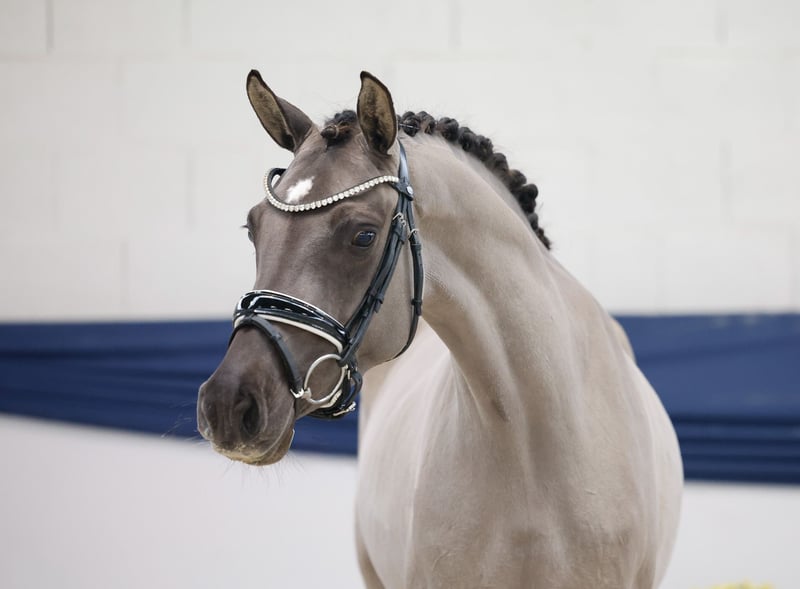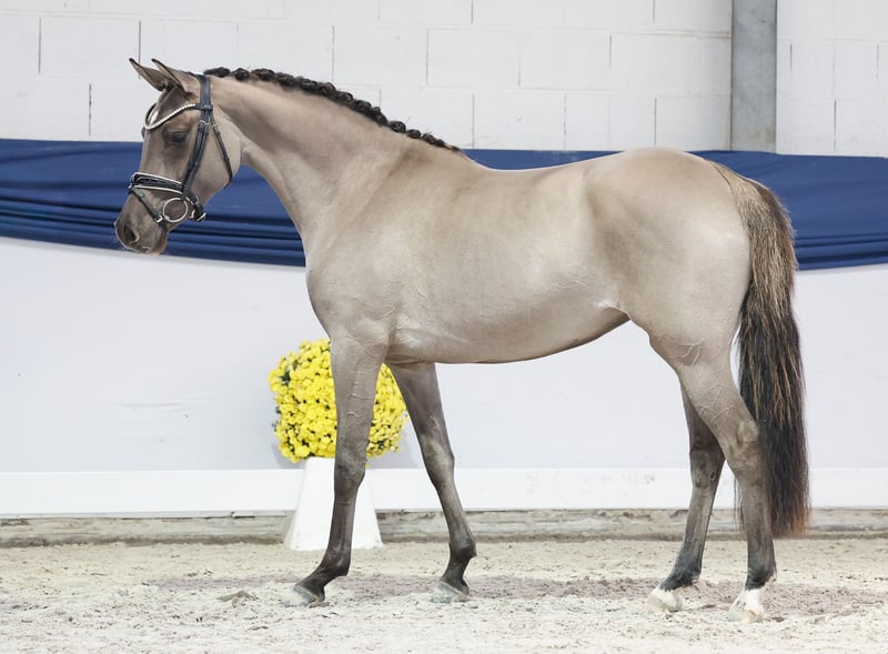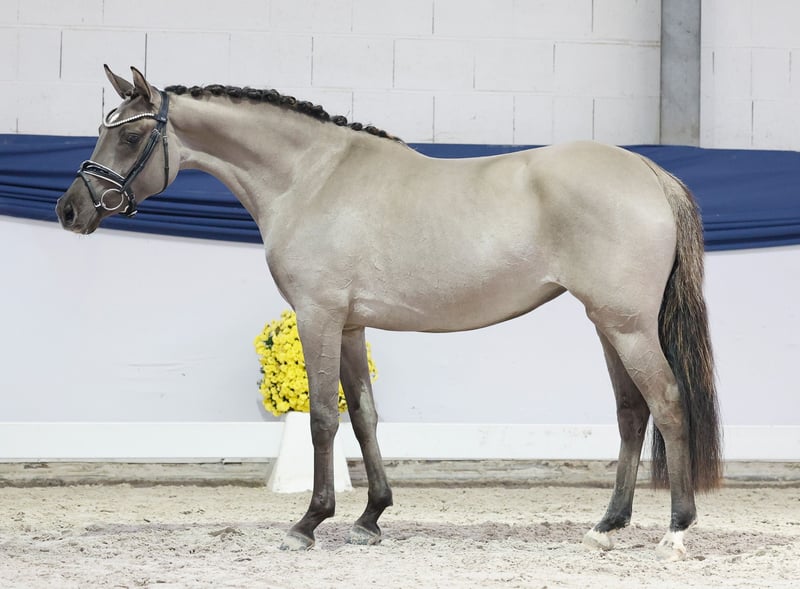 Nella nostra collezione trovi giovani selezionati con rigore, adatti a tutte le esigenze: pony da addestramento, da allevamento e pony per bambini. Puoi accedere all'intera collezione qui: https://ponyforum.auction Esiste il pony perfetto per i bambini? Onesto, socievole, sensibile, amichevole, generoso e con nervi d'acciaio? E magari anche bello? – Sì, eccolo! La puledrina grigia di tre anni Donna Lotta non si distingue solo per il suo colore speciale di grigio palomino. La sua personalità e il suo modo di essere sono altrettanto unici! Un pony solare, che racchiude tutto ciò che si desidera da un (futuro) pony di famiglia. Lotta è molto dolce nel maneggio, conosce già le prime esercitazioni di longe e può iniziare subito l’addestramento come pony da passeggio! Direttamente dall’allevatore.