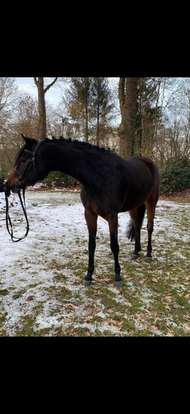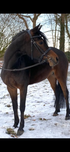 Enjoy est une ponette de sport allemande, typée, mesurant 1,47 m, âgée de 4 ans, avec de bonnes allures de base et une conformation correcte. Elle est une jeune ponette sensible et réactive, dotée d’un grand potentiel pour sa future formation. Enjoy a été doucement mise en selle et se montre volontaire et bien éduquée sous la selle. Au longe, elle marche en toute sécurité dans les trois allures de base et répond très bien aux aides vocales. Elle connaît déjà le travail aux barres au pas, au trot et au galop, ainsi que le saut en liberté, qu’elle apprécie beaucoup. Dans son quotidien, Enjoy est amicale et proche de l’humain. Elle aime qu’on la brosse, qu’on la selle et qu’on lui fasse les pieds. Elle adore aussi voyager en van et se laisse facilement charger. Les balades en terrain ouvert (sans autre cheval) se passent sans problème. Son attachement à l’humain est particulièrement remarquable. Dans son comportement quotidien, elle est très douce et facile à vivre. En saut en liberté, elle montre qu’elle a hérité des qualités de son père, Don Deluxe, spécialiste du saut d’obstacles. Elle a grandi directement chez nous à la ferme, où elle connaît les tracteurs, les chiens, les chats, les grosses machines, etc. En tant que pouliche de lait, elle a été primée. Enjoy est très compatible avec d’autres chevaux. En raison de son âge et de son niveau de formation, Enjoy n’est pas encore adaptée à un cavalier débutant. Elle recherche une personne douce et calme, qui prendra plaisir à continuer la formation d’un jeune cheval. L’été dernier, Enjoy a présenté un léger eczéma estival saisonnier, très facile à gérer. Elle n’a pas nécessité de couverture ou autre protection. C’est pourquoi elle est vendue à un prix très avantageux. La vidéo la montre lors de son premier saut en liberté ❤️ en décembre. Les photos ont été prises il y a quelques jours. Si vous êtes intéressé, je serai ravie d’être contactée. Pour un essai, une participation de 30 € sera demandée pour couvrir les frais (qui seront déduits en cas d’achat). Contact par WhatsApp au 0170-8323905.