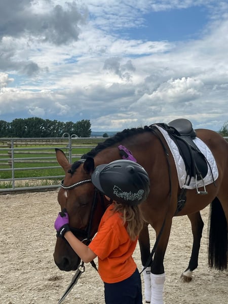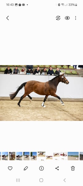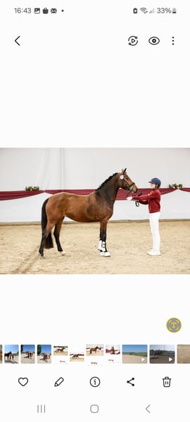 "Fine little Frieda" is a 4-year-old brown pony mare - currently standing at 1.52m, she is a typical XL pony and thus ideal for small adults and children! Frieda has a lot of potential for dressage - her outstanding hind leg is particularly noteworthy, as it always steps energetically and diligently far under the center of gravity. In free running competitions, her gaits and type have consistently been rated 8.0 or higher (only in the walk did she not achieve relaxation)! The beautiful and extremely affectionate mare comes from our own breeding and is being sold only due to lack of time/riding and further offspring. (Frieda's half-sister produced a gold-winning foal this year with all scores of 9.0!!!) Frieda is still relatively green, but always well-behaved and very rideable; she is easy to shoe and load - all in all, just a dream pony for high-level dressage or simply as a great leisure partner! Frieda's father "Für immer Du" (S* and S** multiple winner with up to 76.3%) is an ideal stallion for pony mares with a height of 1.56m and brings a lot of potential because he has the best dressage blood through Florencio and Rubinstein! Frieda's father is known for his absolute nerve strength and a wonderful character - both of which he has passed on to his daughter "Fine little Frieda"! She is very social and compatible, and I am happy to provide her X-ray certificate for viewing! For further questions or to arrange an appointment, please contact me by phone or WhatsApp at 0175 2221173! Location: 89617 Untermarchtal