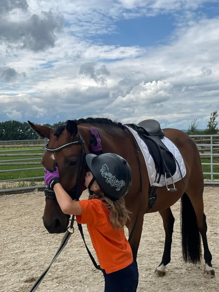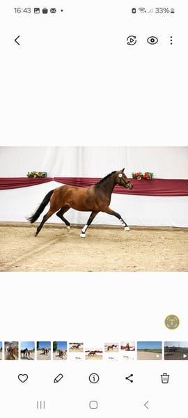 "Feine kleine Frieda" ist eine 4 jährige braune Ponystute - mit derzeit 1,52m.ist sie ein typisches XL-Pony und somit ideal für kleine Erwachsene u Kinder! Frieda hat sehr viel Potential für die Dressur - hervorzuheben ist ihr überragendes Hinterbein,welches immer sehr fleißig u energisch weit unter den Schwerpunkt tritt, in Freilaufwettbewerben wurden ihre Gänge u ihr Typ immer mit 8,0 oder höher bewertet (lediglich im Schritt kam sie dort nicht zu Losgelassenheit) ! Die bildschöne u extrem verschmuste Stute stammt aus eigener Zucht u wird nur aufgrund von Zeit/Reitmangel und weiterer Nachzucht verkauft. (Halbschwester von Frieda stellte dieses Jahr mit ihrem ersten Fohlen direkt ein Gold/Siegerfohlen mit allen Noten von 9,0!!!) Frieda ist noch relativ grün,aber immer brav u sehr rittig,sie ist schmiede u verladefromm - rundum einfach ein Traumpony für den hohen Dressursport oder einfach als toller Freizeitpartner! Frieda ihr Vater "Für immer Du" (S* u S** vielfach mit bis zu 76,3% gewonnen) ist mit einem Stockmass von 1,56m ein idealer Hengst für Ponystuten u bringt viel Potential mit,weil er über Florencio u Rubinstein allerbestes Dressurblut verfügt! Frieda ihr Vater ist bekannt für seine absolute Nervenstärke und einem Traumcharakter - beides gab er an seine Tochter "Feine kleine Frieda" weiter! Sie ist sozial sehr verträglich u ihren Röntgentüv stelle ich gerne zur Ansicht zur Verfügung! Bei weiteren Fragen bzw zur Terminabsprache bitte telefonisch oder per WhatsApp unter 0175 2221173 melden! Standort 89617 Untermarchtal