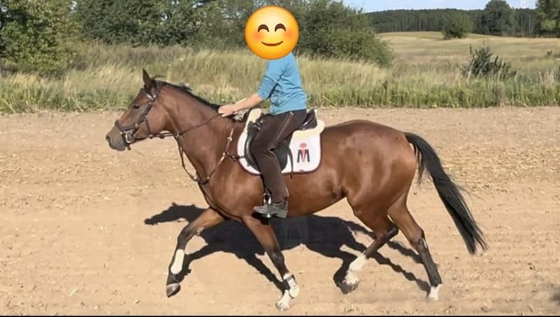 hübsche fromme Reitponystute (DR) sucht ein Zuhause; sie ist auf der Koppel mit ihresgleichen groß geworden; vor einem halben Jahr eingeritten, seitdem nicht weiter gearbeitet; sensibel und gutmütig, samt der Größe gut für Mädchen/Frauen geeignet; bei uns heißt sie liebevoll "Sonnenschein"; Besichtigung ausdrücklich erwünscht und weitere Erläuterungen gern per Telefon;