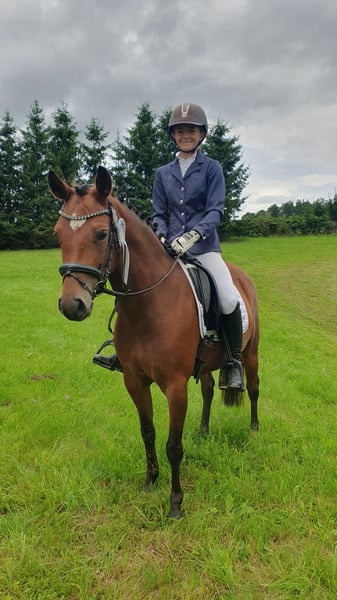 "Very Sweet" Zum Verkauf steht eine wunderschöne deutsche Reitpony-Stute, geboren im Jahr 2020. Mit ihren 1,40 m deckt sie den Reiter dennoch gut ab. Die Stute ist ideal für die Freizeitgestaltung und begeistert durch ihr freundliches Wesen und ihre angenehme Art. Sie konnte sie in der Dressurpferde A und in der A Dressur platzieren. Führzügel WB ist sie auch schon gegangen. Sweet geht allein oder in der Gruppe ins Gelände. Dabei zeigt sie sich immer aufgeschlossen und händelbar. Auch von Kindern! Stangen und ein kleines Cavaletti kennt sie, ist aber nicht weiter gefördert worden. Sonstiges: Verladefrom Geht Barhuf Verbandsprämien Stute Entnote 7,5 Bei Interesse oder für weitere Informationen stehe ich gerne zur Verfügung.