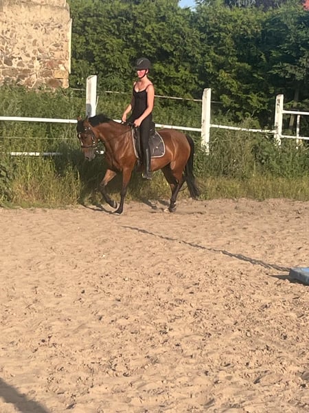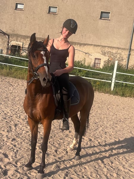 La Leska ist eine 5jährige Ponystute mit vollen Papieren. Sie ist ca. 1.42 m , deckt jedoch gut ab. Die Reiterin auf dem Foto ist 1.72 m. Lala , wie sie liebevoll genannt wird, ist seit Anfang des Jahres unter dem Sattel und somit auch noch völlig unverbraucht. Sie ist vielseitig, professionell ausgebildet, ist sehr fein und einfach an die Reiterhilfen zu reiten, ist super brav im Gelände und macht auch kleine Sprünge. Ein Pony das Spaß macht und immer lieb ist.