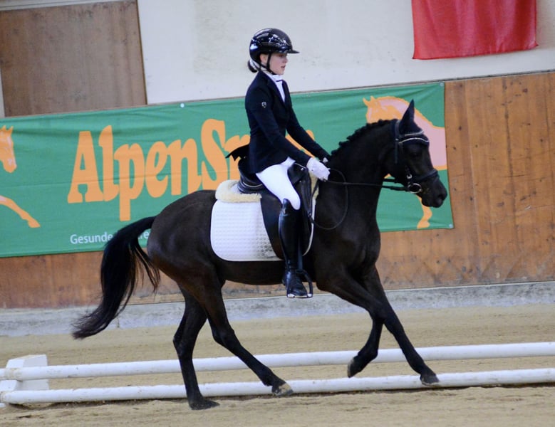 Bildschöne bereits weit geförderte Dressurponystute. Derzeit ist sie 4 jährig und 144 cm groß . Sie konnte bereits mehrere Siege auf Dressurturnieren verzeichnen, mit Wertnoten bis 7,8. Sie bringt ebenfalls großes Sprungtalent mit auf den Tisch, hier fehlt es leider noch an Parcoursroutine. Sie ist mit Kindern und jungen Reitern vertraut. Sie geht ebenfalls gerne ausreiten. Sie ist Schmiede und Verladefromm und Herdentauglich. Sie findet sich sowohl in einer Box als auch im Offenstall zurecht. Wer ein wirklich feines Pony sucht ist bei ihr genau richtig. Sie steht derzeit in Wien im Prater und kann gerne jederzeit besichtigt werden.