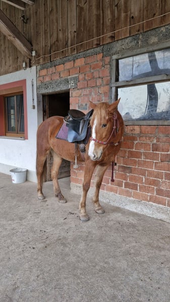 Yellow kam Anfang letzten Jahres in unser Team. Wir bieten Wanderritte auf unsrem Hof an und geben Unterrichte im Gelände. Jedoch stellte sich heraus, dass sie mit wechselnden Reitern und auch der Umgang mit Reitschülern nicht ihres ist. Sie braucht eine erfahrene, klare aber ruhige Hand. Und vor allem eine Person als ihr "Mensch". Yellow steht am Anfang ihrer Ausbildung. Sie kam als zierliche, überbaute junge Dame zu uns. Da ich Papieren nicht immer glaube, haben wir sie beim Osteopathen, sowie beim Zahndoktor vorgestellt. Laut dieser liegt das Geburtsjahr ca. bei 2021/22. Laut Pass ist sie 2020 geboren. Yellow bekam nun den Winter noch Zeit zu wachsen, deswegen wir sie als angeritten verkaufen. - kein Anfänger,- oder Kinderpony - angeritten - Stockmaß 146 cm. Ist noch bissel am wachsen. - vorne beschlagen - zierlich, kein Gewichtsträger, ca. bis 60/65kg. - in erfahrene Hände mit Pferdeverstand