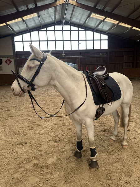 Zum Verkauf steht meine Deutsche Reitponystute Crystal Elf (geb. 2020, ca. 147 cm mit Eisen) mit vollem Papier (Steendieks Chilli Willi x Rheingold). Sie ist freundlich, motiviert und möchte immer gefallen. Sie steht derzeit komplett im Training, zeigt sich leistungsbereit und klar im Kopf – kein Buckeln oder Steigen, keine Unarten. Aufgrund ihres Alters kein Kinderpony, aber ideal für ambitionierte Jugendliche oder kleine Erwachsene mit Pferdeerfahrung. Sie kann bereits einfache Wechsel, Außengalopp und co. Auch kleine Sprünge unter dem Reiter hat sie mit Bravour gemeistert. ,,Line“ war immer gesund, ist brav im Umgang und kennt sowohl Boxenhaltung als auch die Herde (steht aktuell in einer Stutengruppe). Sie ist schmiede- und verladefromm, kennt Kinder und Hunde, ist an die Doppellonge gewöhnt und läuft regelmäßig in der Führanlage. Verkaufsgrund: Zeitmangel wegen zwei kleiner Kinder – kein Notverkauf, sondern ein liebevoller Platz mit Förderung wird gesucht. Sie zeigt eine riesige Freude am Springen, ich kann mir vorstellen, dass sie vor allem in der Vielseitigkeit gut aufgehoben wäre. Geimpft, entwurmt und aktuell vorne beschlagen. Die Zähne wurden im Juli '25 gemacht.