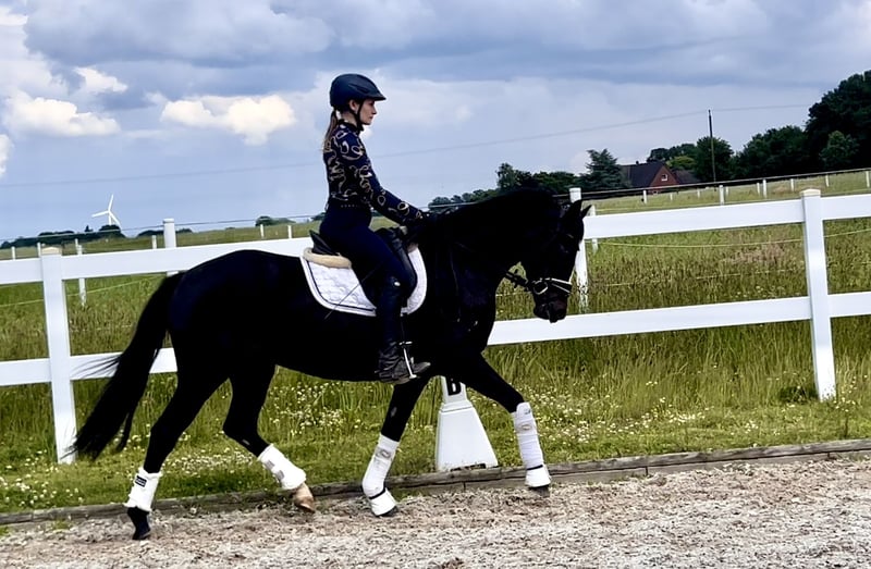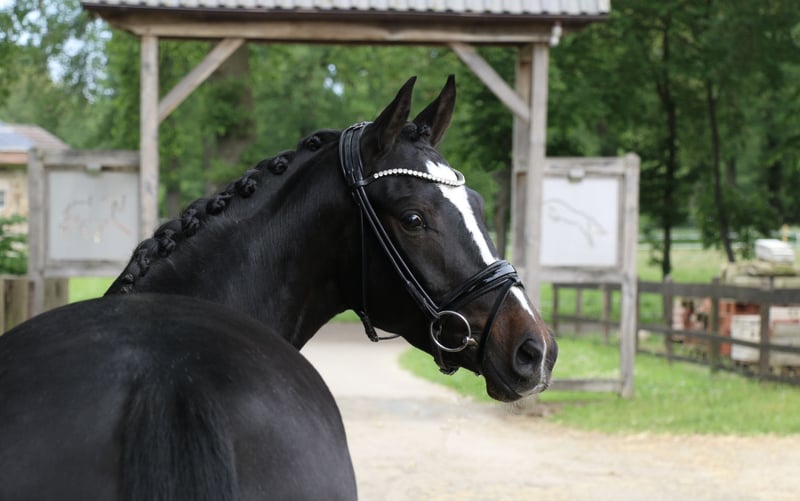 Lokalizacja: Recke, Niemcy | DR | klaczka | ciemnogniada | *2021 | 148 cm | potomstwo Kent Nagano WE x Bartholomeo „Nagini” to bardzo ładnie zbudowana klaczka. Oprócz atrakcyjnego wyglądu, „Nagini” posiada trzy dobre podstawowe chody. Już teraz wykazuje wysoką ujeżdżalność i świetne nastawienie do pracy. Klaczka jest łatwa w prowadzeniu, chętnie się ujeżdża i zawsze stara się zadowolić swojego jeźdźca. W kontaktach jest absolutnie bezproblemowa i odważna. Ze względu na swoje pochodzenie, możemy wyobrazić ją sobie we wszystkich dziedzinach jeździectwa, jak również w sporcie zaprzęgowym. Obecnie „Nagini” startuje w ujeżdżeniu na poziomie E z młodą jeźdźczynią. Bez problemu pokonuje również małe przeszkody na parkurze oraz skoki terenowe. Jej ojciec, „Kent Nagano”, już w młodym wieku odnosił sukcesy na konkursach FEI. Jej matczyny dziadek, „Bartholomeo”, jest znany z tego, że produkuje spokojne i dobrze jeżdżalne konie i poniki zarówno do rekreacji, jak i sportu wyczynowego. Sam startował w ujeżdżeniu do poziomu klasy M oraz w skokach do poziomu A. Jego potomstwo odnosi sukcesy także w wszechstronnym, jak i w sporcie zaprzęgowym. Dzięki wszechstronnym zdolnościom „Nagini”, jej przyszły jeździec ma otwarte wszystkie drzwi do sportu, rekreacji i hodowli. Rtg z 2024 roku, w tym zdjęcia kręgosłupa, dostępny bez zastrzeżeń. https://youtu.be/w8SoTnji3uY?si=zZBOVAw_OQ353Ys6 W przypadku poważnego zainteresowania prosimy o kontakt telefoniczny pod numer +491707941333.