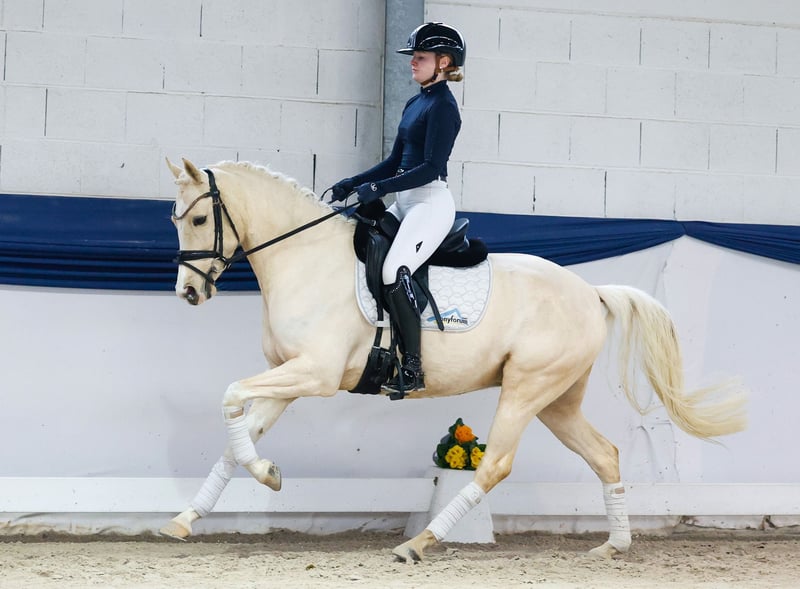 In unserer Kollektion stehen streng selektierte Reitponys f�r alle Anspr�che: Ausbildungs-, Zucht- und Kinderponys Hier gelangen Sie zur Gesamtkollektion: https://ponyforum.auction Ready for take off! Die fünfjährige Guineveres´s Gold nach abgeschlossener Grundausbildung nun bereit, in die große weite Welt auszuziehen. Sie wurde sorgfältig und immer wieder mit Pausen gut nachreitbar ausgebildet. Dreijährig konnte sie ihre Stutenleistungsprüfung mit der Endnote 8,1 gewinnen und wurde vom Westfälischen Pferdestammbuch mit der Verbandsprämie ausgezeichnet. Ihr hervorragendes Freispringen wurde sogar mit 9,0 bewertet! Ihre absoluten Vorzüge sind ihr hervorragendes Interieur und ihre charmante Art, eine ganz unkomplizierte Stute. Sie kennt neben der Dressurarbeit auch das Springen! Mit ihren bunten Abzeichen fällt sie direkt auf und bleibt im Gedächtnis. Wir können uns gut vorstellen, dass Guinnie auch schon für eine Kombi aus Ausbilder und Kind top geeignet ist. Sie bringt alle Vorzüge mit, die man an ein solches Pony stellt!