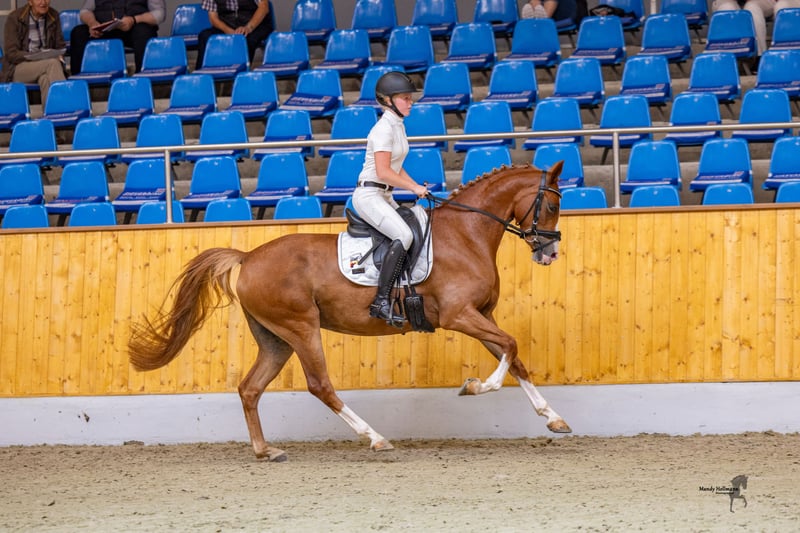 Te koop staat een betoverende 5-jarige Duitse Reitponyhengst met uitstekende afstamming (Nilantshove's Zippo × Flipper D E'lle). Dit pony meet momenteel 148 cm en toont potentieel als springpony. Op slechts vijf jaar oud laat ze al zien dat ze geschikt is als toekomstig kinderpony. Zowel bij het hoefsmid als bij het laden is ze volkomen braaf en onbevreesd. Haar kwaliteiten als fokmerrie worden onderstreept door haar nominatie voor de Verbandsprämie en het succesvol afleggen van de merrietest, wat haar potentieel en kwaliteit bevestigt. Röntgenfoto’s zijn zonder afwijkingen beschikbaar. We zoeken voor dit bijzondere pony een liefdevol en stimulerend thuis. Video beschikbaar!