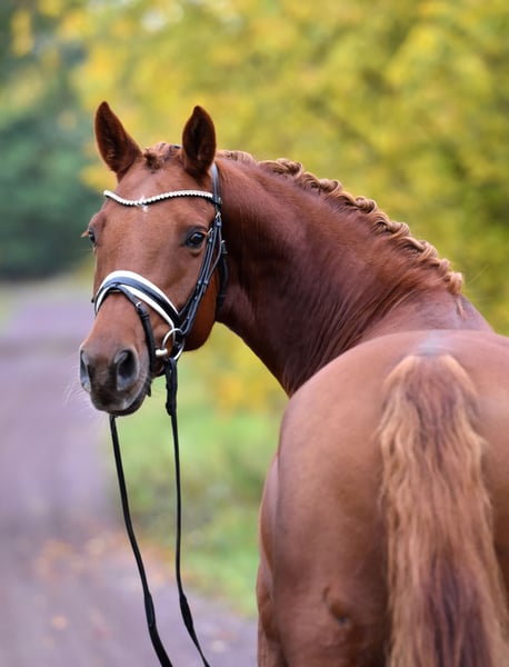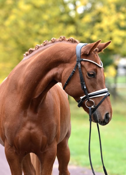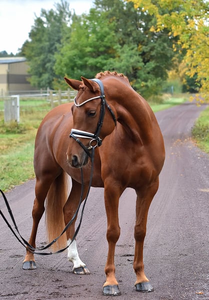 " Glitzer Gold" - nicht nur der Name dieser tollen Stute ist bezaubernd! Die 5 jährige Tochter des S platzierten Ponyhengstes " Glück auf A" kommt direkt vom Züchter und wurde toll aufgezogen und schonend auf Dressurpferde A Niveau ausgebildet. Reiten in Halle, Platz und Gelände - kein Problem für Glitzer! Sie überzeugt mit 3 gleichmäßig sehr guten Grundgangarten und schon guter Versammlungsbereitschaft- das ist eine zum Ausbilden auch für die spätere FEI Tour ! Super brav im Umgang als auch unter dem Sattel. Glitzer wird zeitnah auch noch mal Turnier vorgestellt! Sehr rittig, tolle Anlehnung und bereits recht abgeklärt in fremder Umgebung. Ein sehr guter TÜV inkl. Rücken liegt vor. Unkompliziert auch mit anderen Pferden, nicht stutig! Ansehen und verlieben !