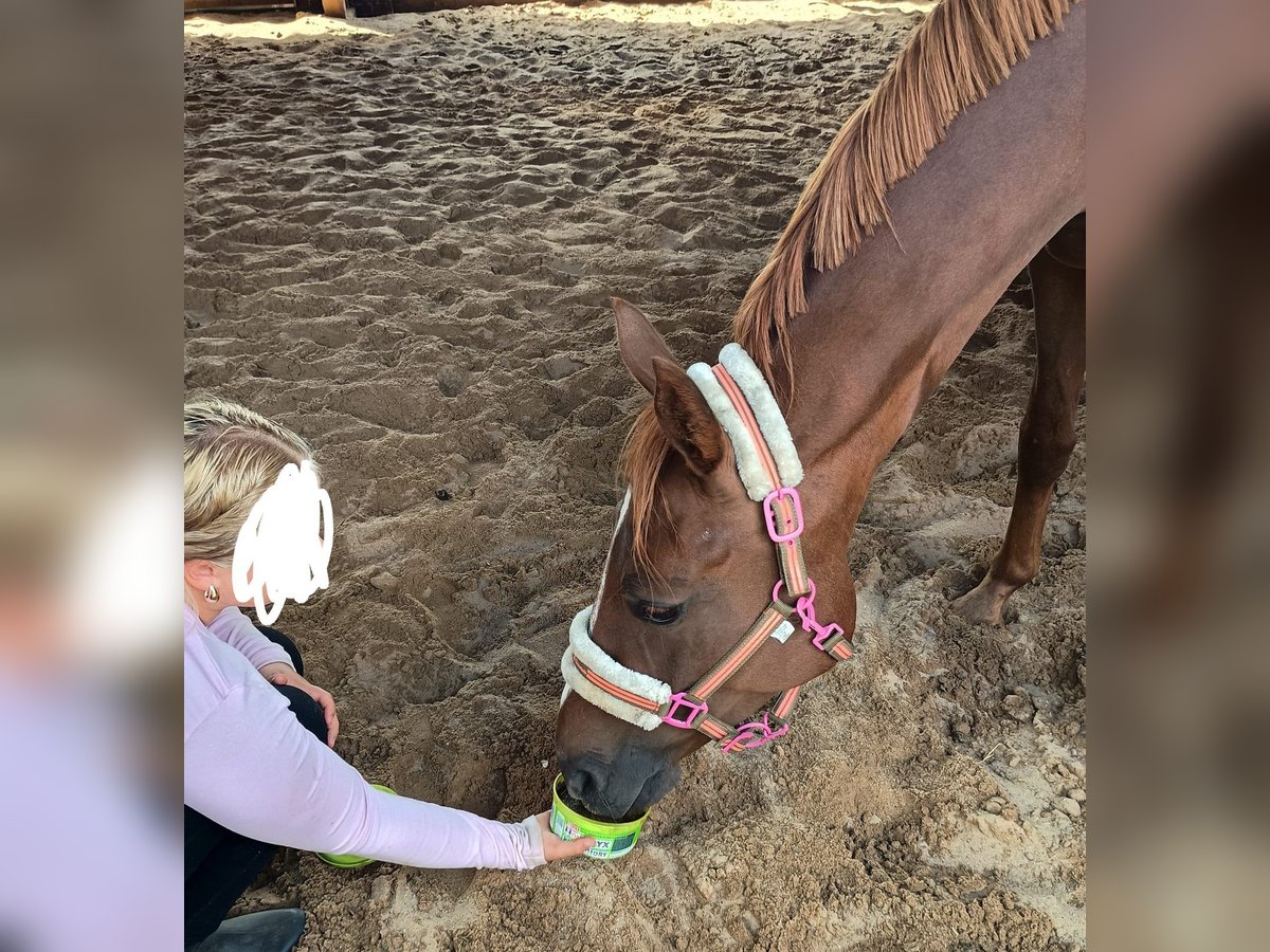 Hallo zusammen, aufgrund von Bestandsreduzierung steht unsere liebe Deutsche Reitpony Stute "Jamaika" zum Verkauf. Name: Flower Power "Jamaika" Rasse: Deutsches Reitpony (DRP x Warmblut) Vater: Power Player Mutter: Floresty (Floresco, Florestan l, Rosenkavalier) Farbe: Fuchs Größe: ca. 1,57 Geboren: 31.03.2021 Ausbildungsstand: Roh (noch nicht geritten), kennt Gelände/ Straßenverkehr, Longieren, Verladen usw. Unsere "Jamaika" hat einen Equidenpass inklusive Zuchtbescheinigung. Interessant als zukünftiges Nachwuchspferd für Reiten/ Zucht oder auch zum Fahren. Keine Krankheiten/ Lahmheiten/ Allergien bekannt. Bei ernsthaftem Interesse gerne melden. Liebe Grüße