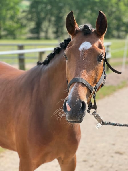 Our 6-year-old pony mare Maxima is looking for a new home where her qualities will be appreciated and nurtured. She is backed, knows trail riding, and has also been driven in a pair. In handling, Maxima is friendly and uncomplicated, but she also has a healthy dose of independence. She is a pony that likes to test whether the rules really apply – therefore, she needs a consistent and experienced rider or driver who can set clear boundaries and continue her training. In the herd, she is very social and reliably stands in the middle of the hierarchy. For school operations, Maxima has a bit too much temperament and independence. As a partner for ambitious leisure or driving pony enthusiasts, she is just the right one. • Age: 6 years • Health: regularly vaccinated & dewormed, barefoot • Training: backed, well-behaved in the field, driven in a pair • Character: well-behaved, social, but also strong-willed and eager to learn Maxima is not a pony for beginners – but she is a great partner for someone looking for a clever, spirited pony with a mind of its own and a big heart. (Videos available upon serious inquiry)
