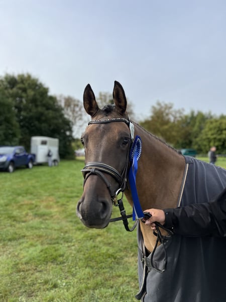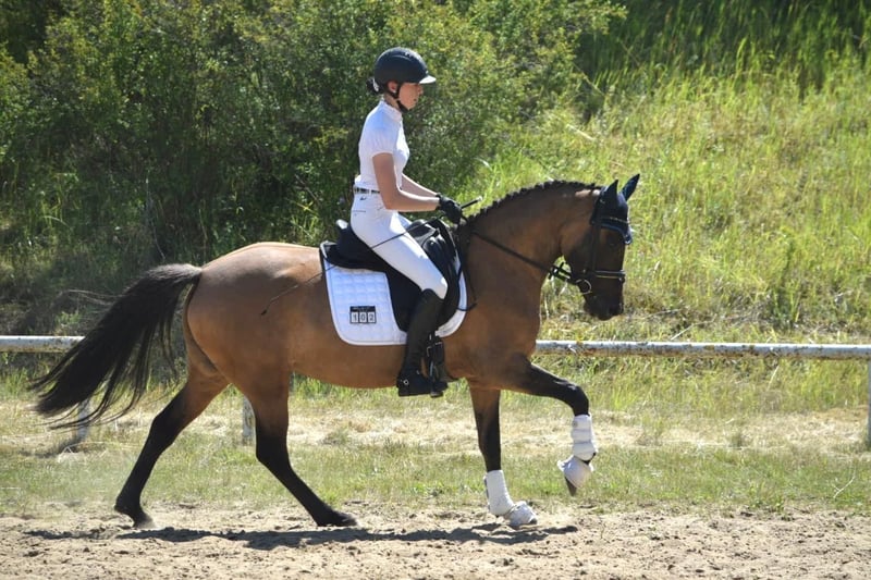For sale is this wonderful 5-year-old riding pony mare by Golden Grey out of Dimension AT NRW, from the extended lineage of Neckar. In 2024, she successfully completed her performance test with a score of 7.85 and received top marks for her temperament. Additionally, she was awarded the State Premium on the MeLa 2024. She is outstanding due to her striking color and her calm, affectionate nature. Currently, she is competing successfully in Dressage Pony A and has already achieved several placings. We would describe her as an ideal children's pony, as she is already being ridden by a 6-year-old girl. We are looking for a wonderful new family home where she will be loved and also further supported in her sporting career. Please feel free to contact us for any questions, including videos.