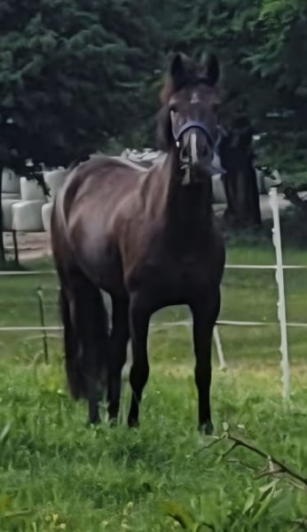 Vendita di una splendida fattrice di pony tedesco da dressage In vendita una bellissima fattrice di pony tedesco, nata nel 2020. È montata per il tempo libero, alta circa 1,48 m, di colore smoky black, molto socievole nel branco, tranquilla nel rapporto e diligente sotto la sella. Attualmente vive in un paddock aperto con due stalloni e una femmina, e la convivenza funziona molto bene. L’abbiamo acquistata per mia figlia, che però ha avuto una crescita improvvisa, rendendo difficile adattarsi a lungo termine. Per questo motivo, l’abbiamo affidata a un centro di allenamento, ma purtroppo durante la partenza si è distorta e si è procurata una ferita al legamento del ginocchio, che dovrà guarire entro fine marzo. Dopo di che, secondo il veterinario, potrà essere rieducata. Se trovo qualcuno disposto a prenderla, la cederò a un prezzo molto più basso. Per me è importante trovare una buona sistemazione, preferibilmente in paddock aperto.