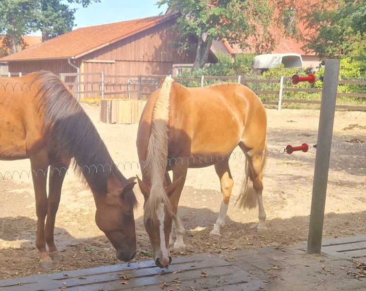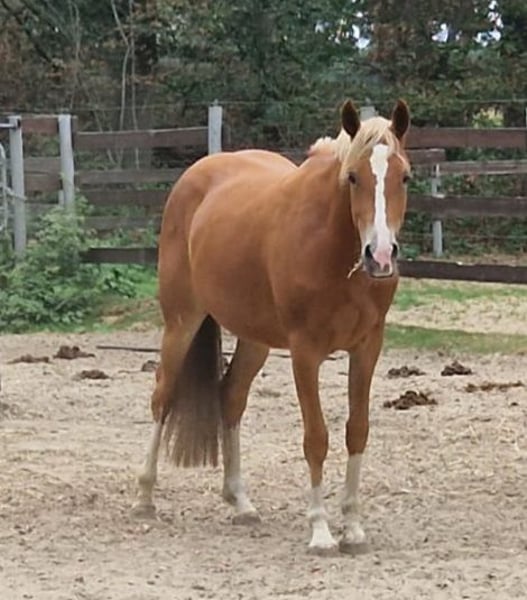 Ich habe mich dazu entschieden Pauline in nachweislich gute Hande abzugeben. Pauline ist 2020 geboren, ca 1,48cm groß, Deutsches Reitpony mit einer interessanter Abstammung. Mehrere Generationen Staatprämienstuten und Brillantringstuten (WeserEms) auf der Mutterseite. Sie ist eine Maidenstute. Überdurchschnittliche GGA. Sie ist sensibel und aufgrund von Unfällen teilweise traumatisiert (näheres dazu nur telefonisch), aber wenn man es weiß händelbar, sie braucht ihre Zeit und eine Person der ihr im entscheidenden moment die Ruhe gibt, wird dabei nicht böswillig. Sie ist ihrem Alter entsprechend im Umgang ein Schatz. Sie lässt sich führen, verladen und putzen. Regelmäßig geimpft (Herpes, Tetanus, Influenza) und entwurmt. Hufschmied und Tierarzt sind kein Problem. Nach Regeneration ihrer Verletzungen und Freigabe vom Tierarzt (3 Jahre Ausheilzeit), ist sie berreit für eine neue Aufgabe. Körperlich belastbar, Schmerzfrei und braucht keine Medikamente. Aufgrund ihrer Vorgeschichte wird sie als Beisteller/Handpferd/Zuchtstute/Bodenarbeitspferd abgegeben (evtl. über die Zeit reitbar, sollte aber nicht im Vordergrund stehen und wird auch nicht garantiert). Durch die zuvor genannten Umstände ist Pauline als Kinderreitpony ungeeignet. Sie braucht eine Bezugsperson, die ihr nochmal ganz viel Zeit gibt und das Reiten nicht im Vordergrund steht. Pauline lebt zur Zeit in einer Gemischten Herde in Offenstallhaltung als auch in Kombination aus Box +Weidehaltung. Sie wir Aufgrund von aus Zeit und Bestandsverkleinerung abgegeben. Ich beantworte keine Anonymen Nachrichten.