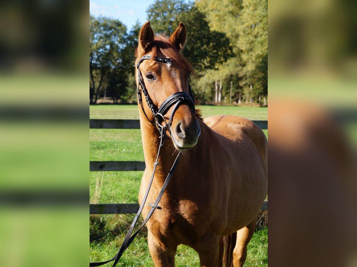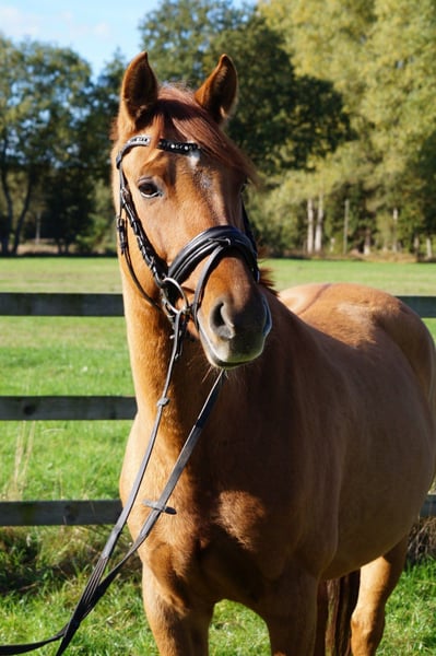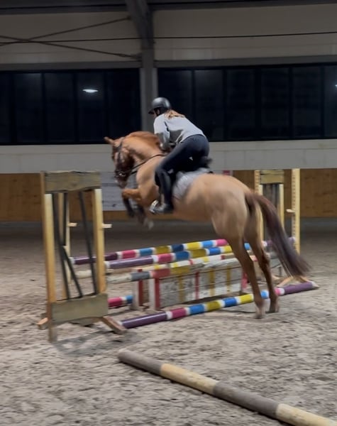 Hechos destacados: - Poni de doma alemán - 6 años - 1,50 m (también apto para adultos de hasta 1,70 m) - Color alazán con castaña y marca blanca en la cara - Versátil, con énfasis en salto y doma clásica - Seguro en campo - Absolutamente intrépido - Saludable Djinny es un poni de doma alemán, de 6 años, mide 1,50 m y tiene un hermoso color alazán con castaña y marca blanca en la cara. Es muy intrépida, nada la perturba (ruidos fuertes, bullicio, entornos desconocidos, perros ladrando, todo le da igual). ¡Es una verdadera todoterreno! Ya sea en el largo reinado explorando el campo o en la pista de salto, ella participa en todo. La doma y el salto son también sus actividades favoritas. Es muy talentosa y confiable en los saltos. En resumen, un poni excelente para el ocio ambicioso o incluso para la competición.