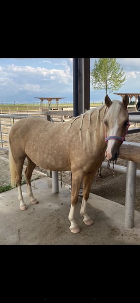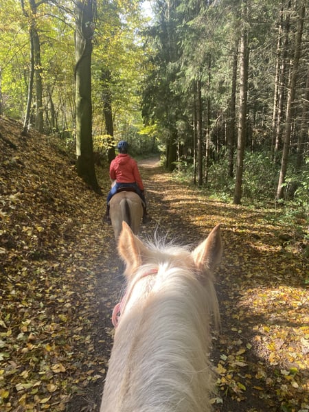 For sale due to a change in my riding plans: my 7-year-old German Riding Pony mare, Goldmarie. She is a very sensitive and intuitive mare, but still requires consistency and structure. I’ve had her since she was a foal; she has always been kept in an open stable, is very social, and needs turnout. She tolerates box stall living, but quickly becomes impatient and starts knocking at the door, etc. 24-hour hay is unfortunately not ideal for her, but I cannot offer anything else, and as a result, she has always been quite overweight with me. She also needs limited grazing, typical of a pony. She has been gently backed and is very responsive to aids, but over the past year, most of her work has been ground work or ridden out. She is capable of going alone or in a group into the terrain, but can be somewhat spooky. Overall, she is not suitable for beginners or children; you should be confident in the saddle and experienced with young horses. In 2024, she suffered from placentitis, which unfortunately resulted in a stillbirth. She was treated and flushed afterward, but we did not breed her again. Whether she could be used for breeding should be carefully evaluated beforehand. She is shod in front because our terrain is very stony and includes many roads. She behaves impeccably with farrier and veterinarian. Trailer loading is generally no problem. I am selling Goldi only because she is too valuable to stand around doing nothing and is getting too fat. Perhaps she will find someone who appreciates her and works with her properly. Please no price inquiries only; due to winter, trial rides are limited at the moment. She will be sold with all accessories. Feel free to contact me via WhatsApp; I am available by phone only after 3 p.m.