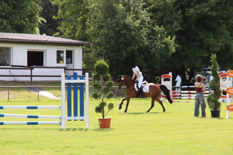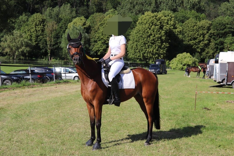 Sprzedajemy naszą 7-letnią klacz niemieckiego kucyka "Vera", ponieważ nasza córka zbyt szybko urosła. Vera jest spokojna w obcowaniu i miała już okazję uczestniczyć w zawodach. Tam wielokrotnie zajmowała miejsca w skokach E. Skakanie sprawia jej wiele radości, a dzięki swoim bardzo dobrym GGA nadaje się również do ujeżdżenia. W terenie zachowuje się wzorowo. Ponieważ Vera została wsiadana późno, chce i powinna jeszcze wiele się nauczyć. Dlatego nie nadaje się jako jedyne kucyka dla dzieci i dla początkujących.