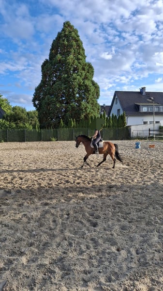 Wir verkaufen unsere 7-jährige deutsche Reitponystute "Vera", da unsere Tochter viel zu schnell gewachsen ist. Vera ist brav im Umgang und hat bereits Turnierluft schnuppern können. Hier konnte sie sich mehrfach im E- Springen platzieren. Das Springen bereitet ihr viel Freude, wobei sie sich aufgrund ihrer sehr guten GGA auch für die Dressur eignet. Im Gelände verhält sie sich vorbildlich. Da Vera erst spät angeritten wurde, möchte und sollte sie noch einiges Lernen. Daher ist sie auch als alleiniges Kinder- und Anfängerpony nicht geeignet.