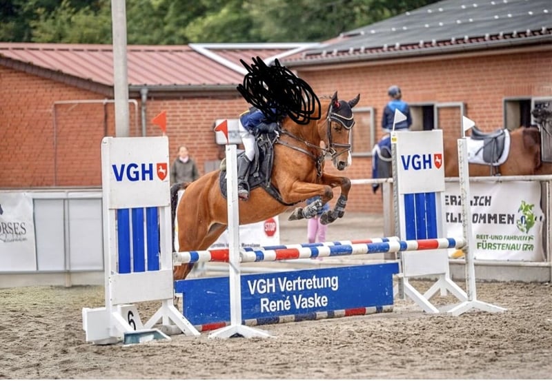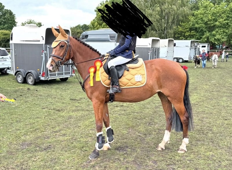 • Stute • 2019 • 148 cm eingemessen • Classic Dancer I * Pico Brilliant Springpferde A platziert WBO Dressur mit Kind platziert Mit Kind von 40 cm bis 80 cm durchweg platziert oder gewonnen Leider müssen wir aufgrund von ungewollten veränderten Verhältnissen auf ein Kleinpferd umsteigen. Daher möchten wir unsere tolle, mega brave und ausgeglichene Ponystute an super gute und liebe Hände abgeben! Wir tuen uns wirklich schwer damit, so möchten wir das Pony wirklich nur in gute Hände abgeben! Das Pony ist super leicht händelbar und kann auch mit Kindern alleine gelassen werden. Sie liebt es betüddelt zu werden. Sie wurde von einem 8 - jährigen Mädchen geritten und auf Turnieren vorgestellt! Sie meißtert alles wirklich mit Souveränität und Professionelität als hätte Sie nie etwas anderes gemacht! Komplett entspannt, mit Ruhe und 100 % Sicherheit trägt Sie ihren Reiter durch jede Prüfung ans Ziel! Kein Bocken, kein Steigen! Sie ist Springpferde A platziert und unsere 8 jährige ritt Sie in einer Saison von 40 cm bis E Springen sicher und mit guten Leistungen ans Ziel! Da die kleine Reiterin eher im Springsport unterwegs ist, ist Sie im WBO Bereich trotzdem kleine Prüfungen in der Dressur mit guten und platzierten Ergebnissen gelaufen. Auch hier war das Pony immer 100 % verlässlich! Das Pony macht einen selbstständigen Wechsel im Galopp, sodass sich die Kleinen voll und ganz auf sich konzentrieren können! Wie oben schon erwähnt geben wir das Pony wirklich nur in gute Hände, da das Pony nie jemanden schaden möchte und nicht nur in Verbraucher Hände einziehen soll! Alles Weitere kann gerne per Nachricht besprochen werden! Gerne darf das Pony auch angeschaut und Probe geritten werden!