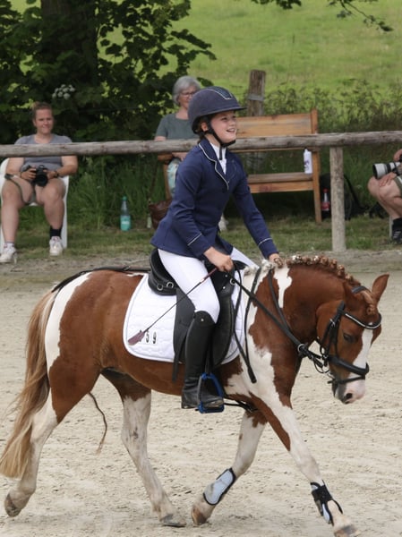 Offering a friendly and eager mare with a strong talent for jumping and a clear goal of never making a mistake. Our mare has competed in show jumping events and looks forward to future competitions with enthusiasm. She has confidently handled everything from lead-rein classes and beginner jumping competitions to more advanced Jump and Run courses, always remaining calm and composed in unfamiliar environments. For further questions or if you're interested, please feel free to contact me personally.