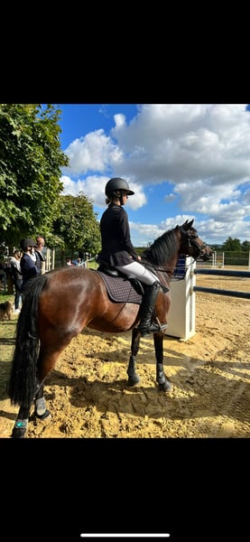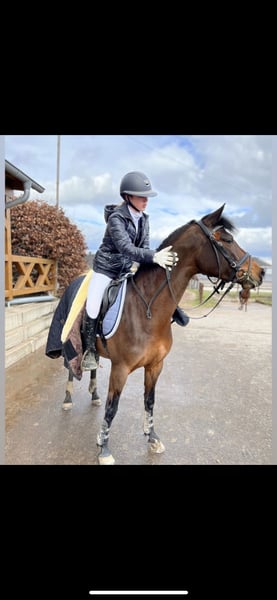 For sale is our 8-year-old pony mare. A striking and spirited mare with qualities, strong character, and ambition. She comes from our own breeding and training. The mare has already been successful at show jumping competitions multiple times. Whether in the arena, outdoor arenas, or on trails (alone or in pairs), everything is no problem. She is also familiar with handling other horses. Only to be placed in the best hands! If you have any further questions or requests, please feel free to contact me. For more information or to arrange a viewing appointment, please get in touch! We look forward to your call!