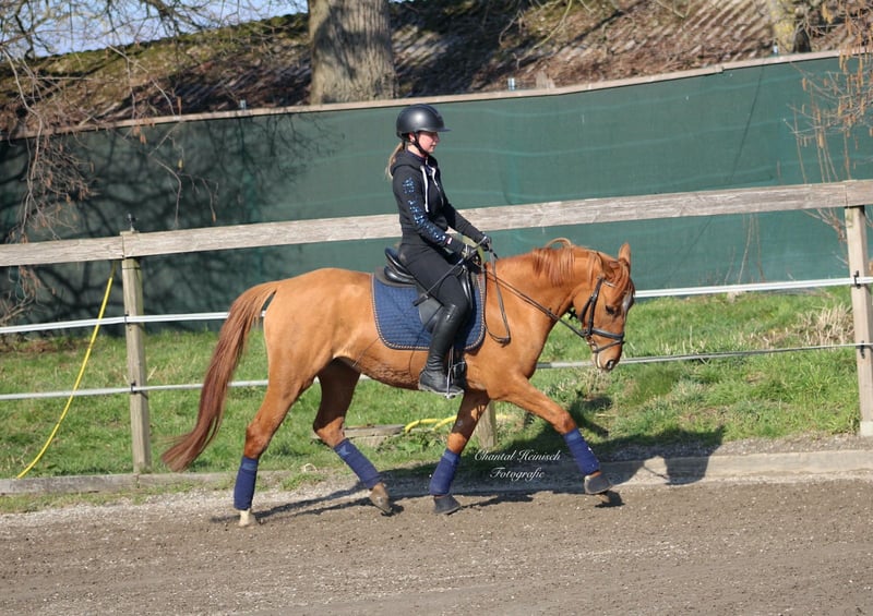 **Advertisement for sale: German Riding Pony - Mare** **Breed:** German Riding Pony **Sex:** Mare **Year of birth:** 2017 **Color:** chestnut **Height:** 147 cm **Discipline:** Dressage We offer a beautiful German Riding Pony mare for sale. This talented chestnut mare, born in 2017, impresses with her elegant appearance and excellent dressage skills. With a height of 147 cm, she is ideal for ambitious riders who are looking for a reliable and powerful partner. If you are interested and would like further information, please do not hesitate to contact us. see www.gestuet-boenniger.de