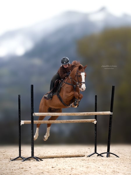 Sport Pony - Chestnut mare, born in 2018, 14.8 hh Offering this beautiful pony for sale, incredibly gentle and easy to handle on a daily basis. She easily completes a 1.20 m course at home. She is a very high-quality and respectful pony who does not flinch at anything. She also rides alone on hacks, loads into the trailer, and lives out in the field. She has a passport and a veterinary health certificate. Price negotiable For more information, please contact +33 7 67 17 73 07