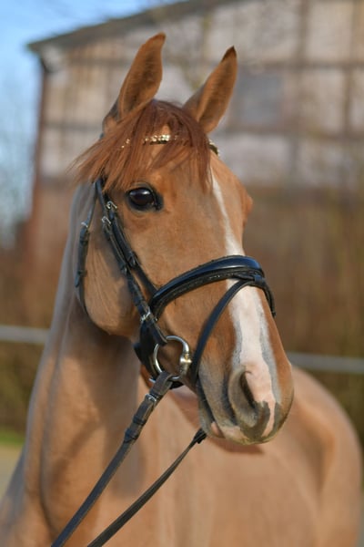 **Verkaufspony Stute Maja** **Name:** Maja **Geboren:** 2018 **Rasse:** Deutsches Reitpony **Größe:** ca. 1,48 m Maja ist eine bezaubernde, gangfreudige Stute, die durch ihr charmantes Wesen und ihre herausragenden Grundgangarten besticht. Mit ihren drei ausgezeichneten GGA (Grundgangarten) ist sie das ideale Pony für junge Reiterinnen und Reiter. ### Eigenschaften - **Einfach zu reiten:** Maja ist brav im Umgang und zeigt sich beim Reiten stets lieb und zuverlässig, was sie perfekt für Kinder macht, die ihre ersten Schritte im Sattel machen. - **Geländetauglich:** Maja liebt es, Ausritte zu machen und zeigt sich dabei mutig und gelassen. - **Erfahren:** Im letzten Jahr hat sie in einer Reitschule ausgeholfen und hat dabei einen tollen Job gemacht. Sie hat zahlreiche Kinder durch die Dressur begleitet und sie auf ihre Reitabzeichen vorbereitet. - **Sprungtalent:** Auch im Springen macht sie eine ausgezeichnete Figur und bringt viel Freude ins Parcours. ### Für wen geeignet? Maja ist perfekt für kleine Mädchen und Jungen, die in die Turnierwelt einsteigen möchten. Sie bietet die ideale Grundlage für eine erfolgreiche Reiterkarriere und ist bereit, mit ihrem neuen Reiter durchzustarten. ### Besonderes Angebot Bei sofortiger Mitnahme erhalten Sie **5% Rabatt** auf den Verkaufspreis! ### Testmöglichkeiten Wir bieten Ihnen die Möglichkeit, Maja eine Woche bei uns zu testen. Diese Probewoche kann von erfahrenen Trainern begleitet werden, und Sie haben die Option, eine Kombination aus Unterricht und Testen zu buchen. Bitte beachten Sie, dass dies mit einer Probegebühr verbunden ist, die nicht vom Kaufpreis abgezogen wird. ### Probereiten Gerne können Sie Maja bei uns anschauen. Die Kosten für das Vorreiten, Vorführen oder Probereiten betragen **30 € pro Person**. **Kontaktieren Sie uns gerne für weitere Informationen oder um einen Termin zu vereinbaren!**