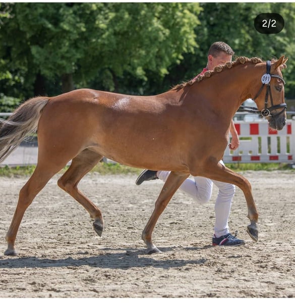 Püppi sucht eine neue Aufgabe. Sie wurde angeritten und erfolgreich auf der SLP vorgestellt. Aktuell ist sie nicht im Training und wurde längere Zeit nicht mehr geritten, da mir ein passender Reiter fehlt. Sie lernt generell schnell und Dinge, die sie verstanden hat, sind leicht wieder aufzufrischen, daher steht auch eine Zukunft als Reitpony nichts im Wege. Sie ist ihrem Menschen gegenüber aufgeschlossen, dabei bevorzugt deutlich eine feste Bezugsperson. Püppi ist als Verbandsprämienstute eingetragen, hat die SLP absolviert und hatte ein gesundes Stutfohlen, welches auch prämiert wurde. Ihre Mutter ist Elite- und StPrSt und auch ihre Großmutter trägt den Elitetitel. Aus ihrem Mutterstamm stammen erfolgreiche Sportpony u.a Rembrandt DDH. Ihr Vater trug ebenfalls den Elitetitel, brachte mehrere gekörte Hengste und Sport erfolgreiche Nachkommen.