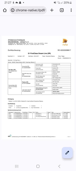 Verkaufe tragende deutsche Reitpony-Stute abstammend von Don Mour x Playboy. Zum Verkauf steht eine wunderschöne deutsche Reitpony-Stute, geboren im Jahr 2017. Sie ist eine elegante Rappstute mit einem Stockmaß von 146 cm und überzeugt durch ihre züchterische Abstammung sowie ihr freundliches Wesen und sehr gute Grundgangarten. Diese Reitponystute hat bereits 4 Fohlen problemlos zur Welt gebracht und ist bereits tragend für April 2026 von Blackman (Baccarat x Leuns Veld‘s Lord). Dreamy ist geritten, allerdings wurde sie in unserem Besitz nie weiter gefördert da sie bei uns als Zuchtstute eingesetzt wurde. Dreamy eignet sich hervorragend als Zuchtstute aber ist auch für den ambitionierten Reiter ein echter Hingucker. Sie ist gesund, regelmäßig geimpft und entwurmt. Bei Interesse oder weiteren Fragen stehe ich Ihnen gerne zur Verfügung. Besichtigung nach Vereinbarung möglich.