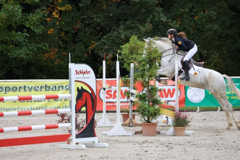 For sale: German Riding Pony mare – ideal for ambitious riders! This elegant grey mare was born in 2017 and impresses with her excellent pedigree and friendly temperament. Standing at 14.8 hh, she is perfect for riders seeking a reliable and versatile horse. She demonstrates great talent in jumping and already shows impressive performance in this discipline. Her agility and jumping ability make her a promising partner for competition or demanding leisure riding. Please feel free to contact me for more information or to arrange a viewing. A wonderful horse for those looking for a dependable and talented riding pony!