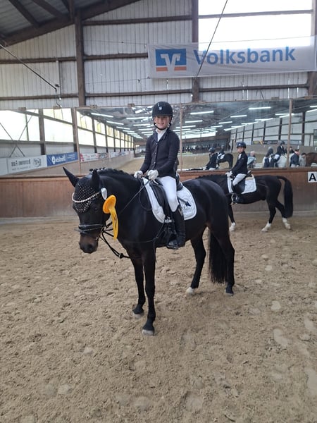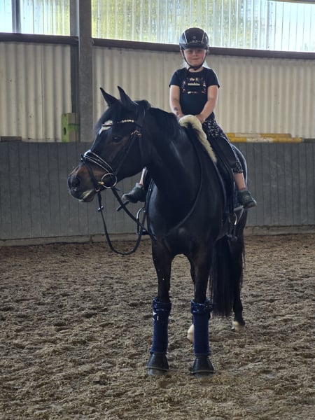 Zum Verkauf steht unsere schöne Pony Stute Magalie. Sie ist ein sehr zuverlässiges Kinder Pony was wirklich alles mit macht. Sie ist erfolgreich bis L Dressur gelaufen und gut ausgebildet. Sie bringt eine tolle Rittigkeit mit und ist super unkompliziert. Sie ist Schmiede & Verladefromm. Sie hat die Staatsprämie und eine gute SLP absolviert. 3 jährig hatte sie bereits ein Fohlen. Da sie ein zungenproblem hat weit unter Wert abzugeben. Bei weiteren Fragen gerne anrufen.