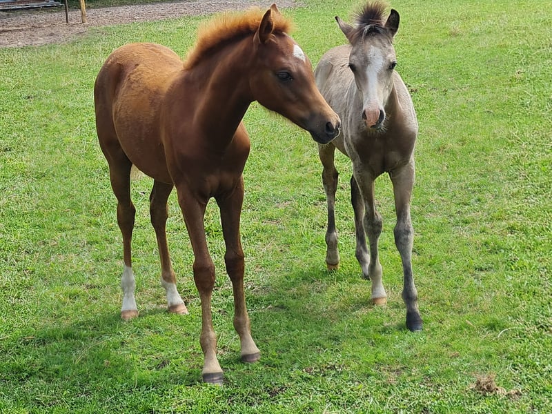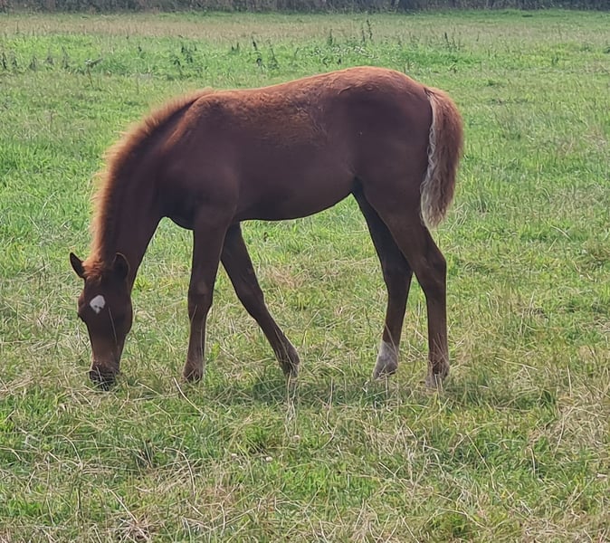 Riehenhofs Lady hat drei tolle GGA. Sie brilliert durch ihr außergewöhnliches Erscheinungsbild. Desweiteren hat sie in einer sehr großen Konkurrenz die Fohlenprämie erhalten und war dadurch zum Fohlenchampionat qualifiziert. Ihre Charakterstärke ist schon jetzt sehr außergewöhnlich. Die kleine Maus ist Herdenhaltung gewöhnt und integriert sich sehr gut in die Gruppe. Kennt sowohl Weide- als auch Stallhaltung. Sie wird später gut für Dressurviereck oder aber auch für das Springen geeignet sein. Man gewinnt aber auch eine sichere Freizeitpartnerin. Für weitere Informationen zu unseren kleinen Maus gerne kontaktieren.